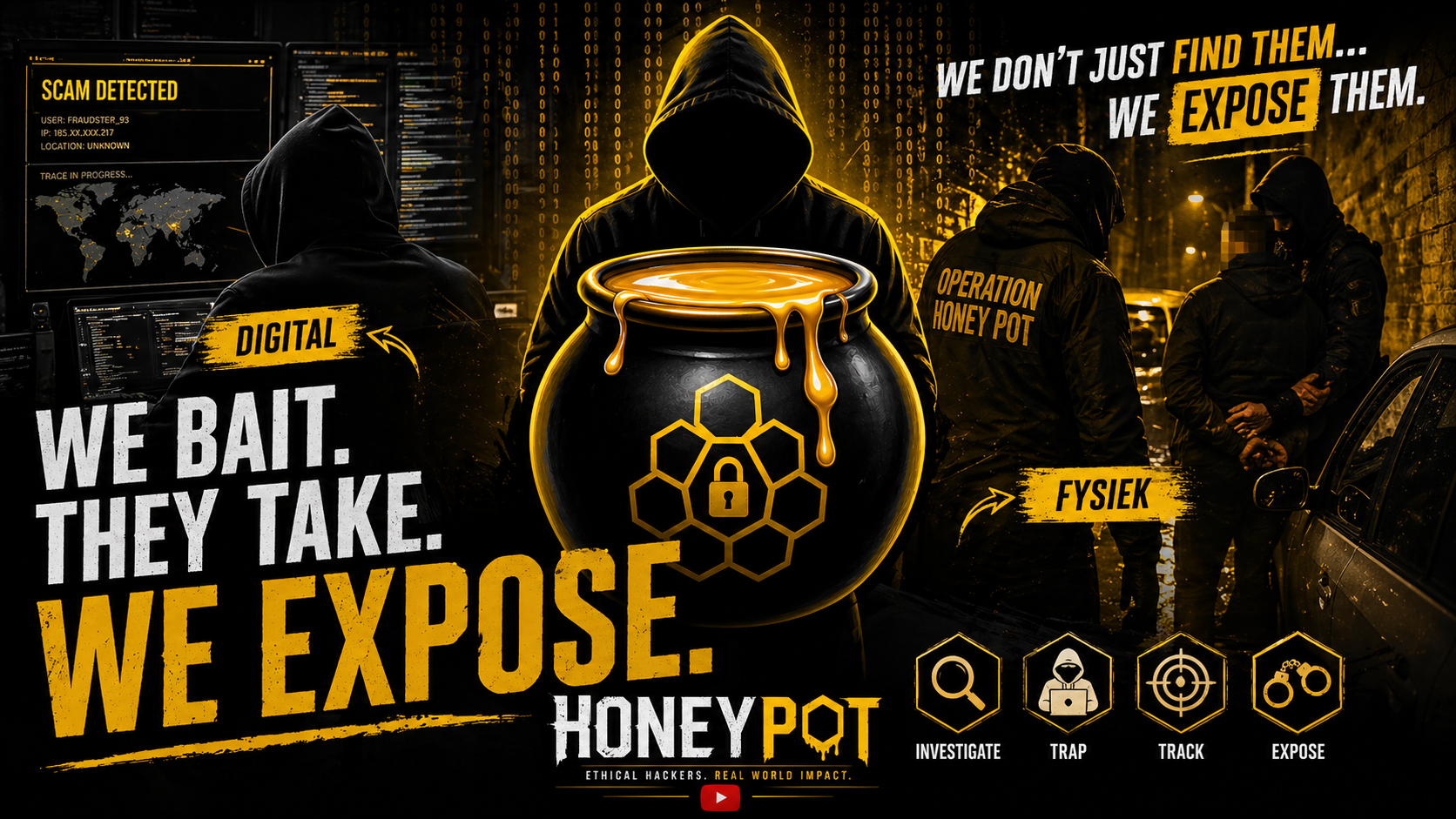 Ethical hackers hunting scammers and cybercriminals — not just behind the screen, but on the street. Every trap. Every takedown. Documented.